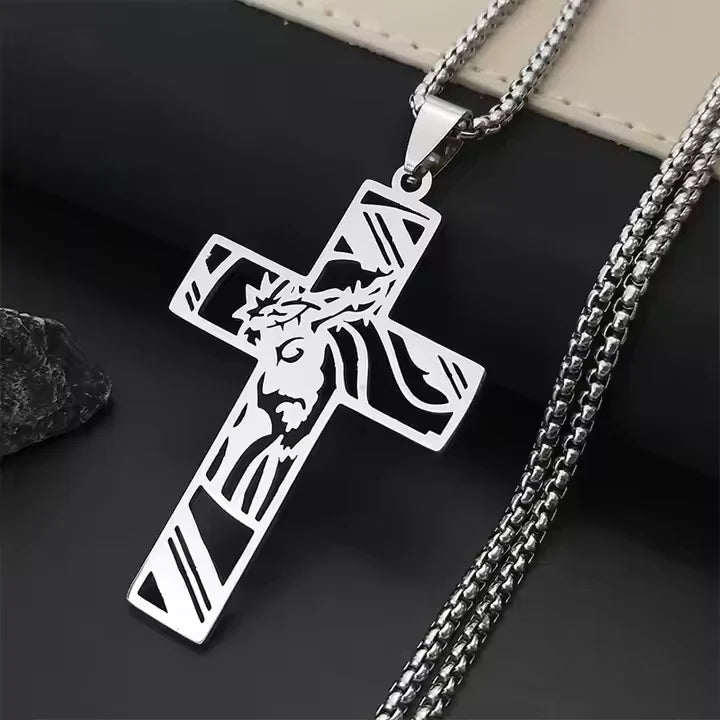 Hermoso colgante con la cruz y la corona de espinas de Jesús, representando sacrificio, amor y redención.
